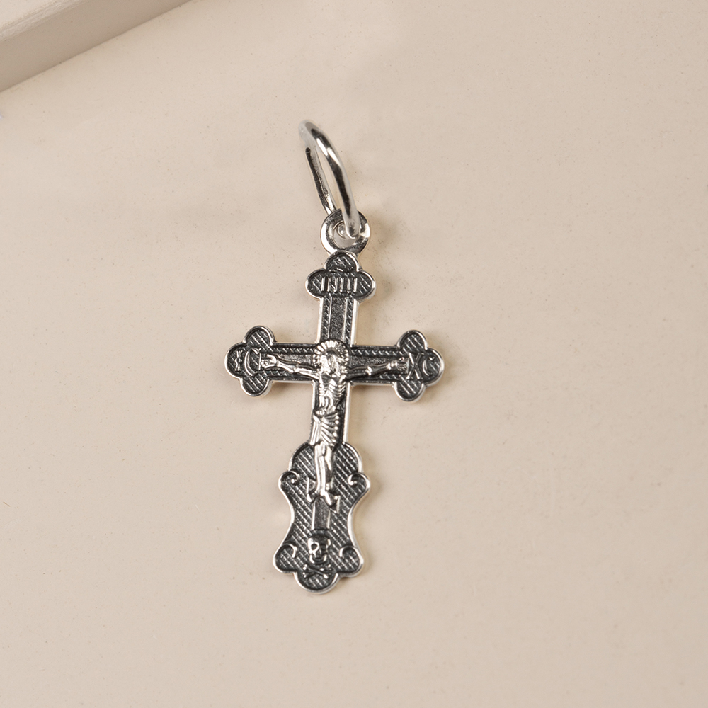 Нательный крестик серебряный 19-0008, штамп, частичное чернение