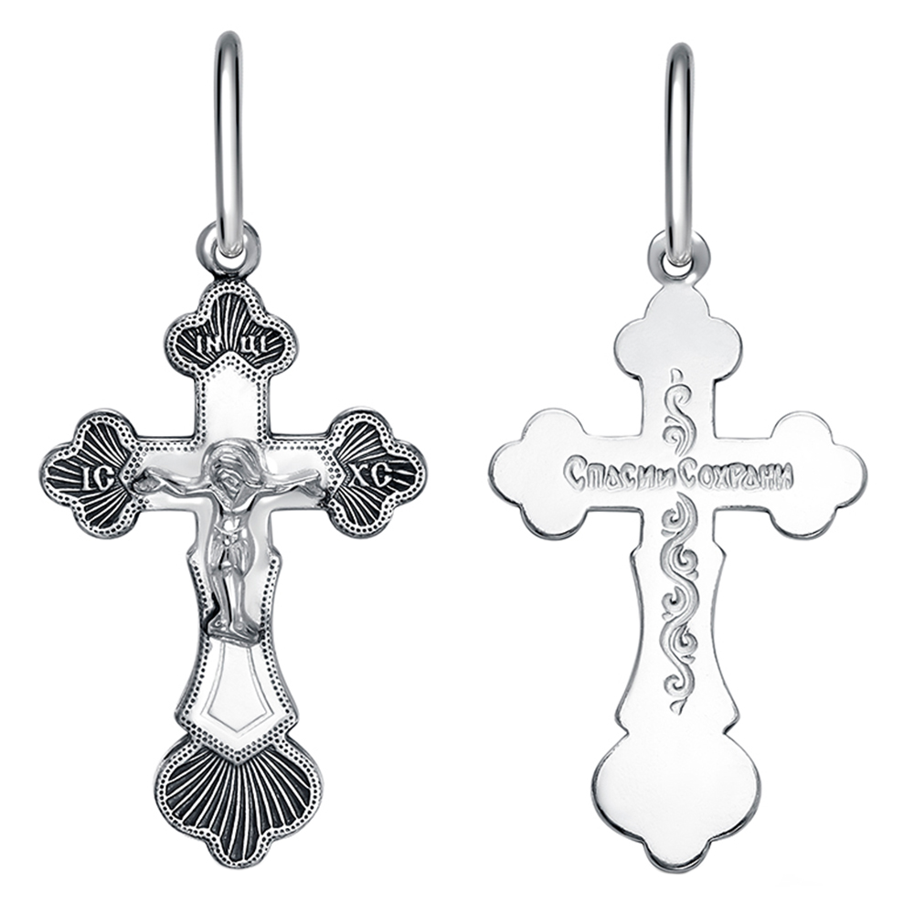 Нательный крестик серебряный 19-0045, штамп, частичное чернение