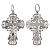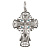 Массивный крест в русском стиле изготовлен из ювелирного серебра. Вокруг центральной части с изображением Распятия помещены ажурные вставки, которые визуально расширяют перекладины. Их дополняют изогнутые декоративные вставки и круг у пересечения перекладин, в который вставлены цветные фианиты. Такой крест можно носить скрытно или поверх одежды, подобрав для него цепочку средней или увеличенной ширины.