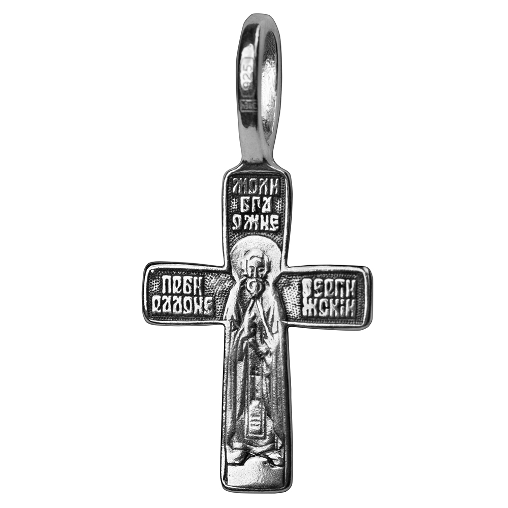 Двусторонний нательный крест из серебра с образом преподобного Сергия Радонежского подойдёт как мужчинам, так и женщинам. Он выполнен в технике литья и украшен частичным чернением, которое придаёт этому крестику рельефность и выразительность.